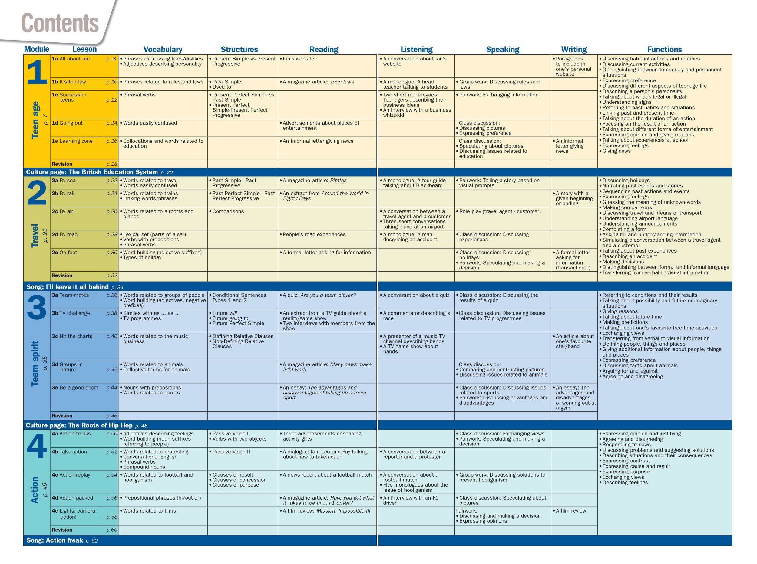 To The Top is a course designed for teenagers and young adults, taking learners from Beginner to Intermediate level. It follows the modular approach which enables students to deal with topics in depth. Its multi-dimensional syllabus combines lexis, grammar structures, language functions, skills work and pronunciation.